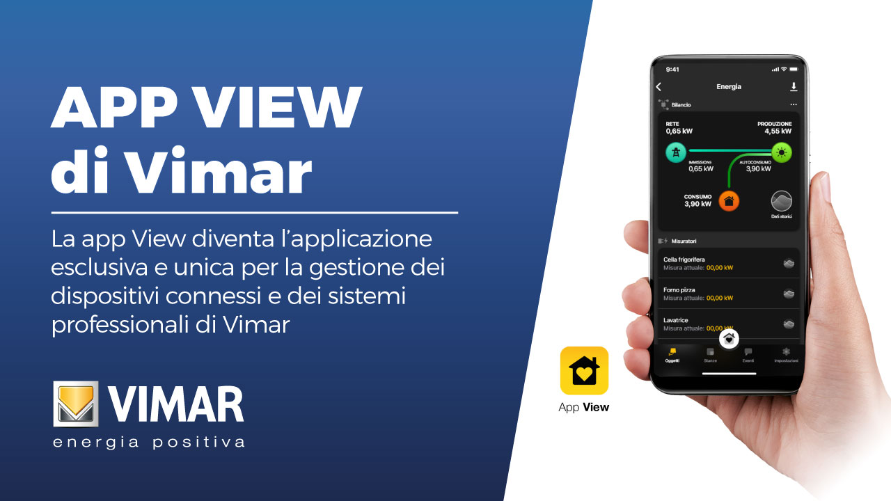 La app View, dalla nuova veste grafica e rinnovate funzionalità, diventa l’applicazione esclusiva e unica per la gestione dei dispositivi connessi e dei sistemi professionali di Vimar (impianto connesso, domotica, antintrusione, videocitofonia e termostati da parete connessi). La rinnovata app View di Vimar: fruibilità e semplicità d’utilizzo Rinnovata nell’icona e nell’interfaccia...26 maggio, 2023 -
