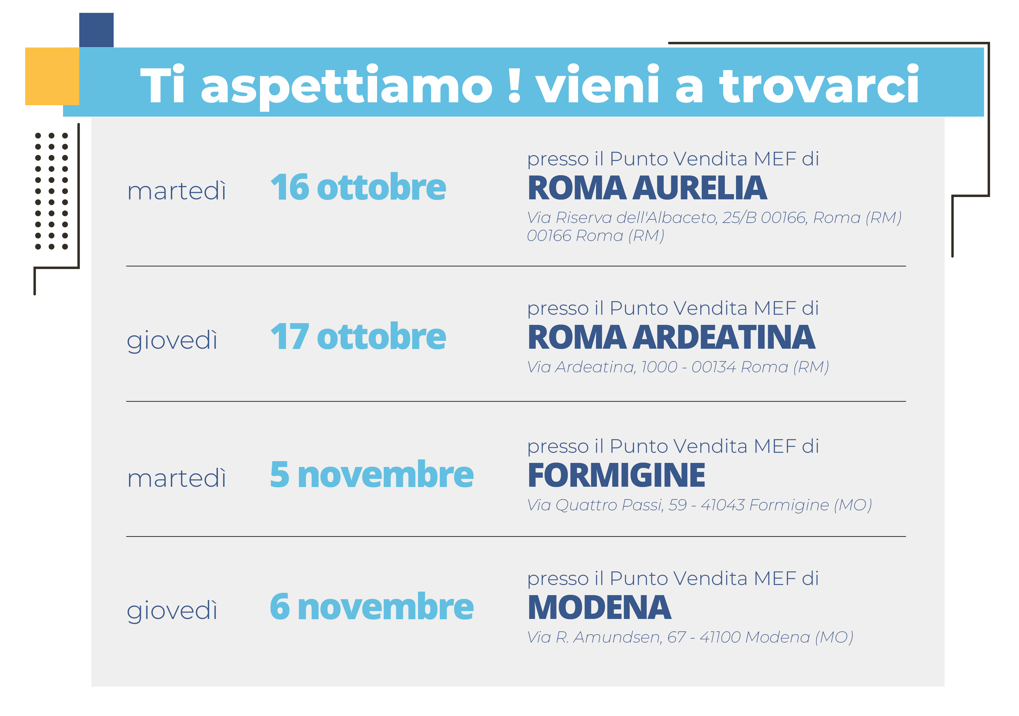Inoltre, avrai l’opportunità di confrontarti con gli esperti del nostro e-Shop e dei servizi digitali, che ti presenteranno le soluzioni più avanzate pensate per semplificare il tuo lavoro e migliorare la tua esperienza.