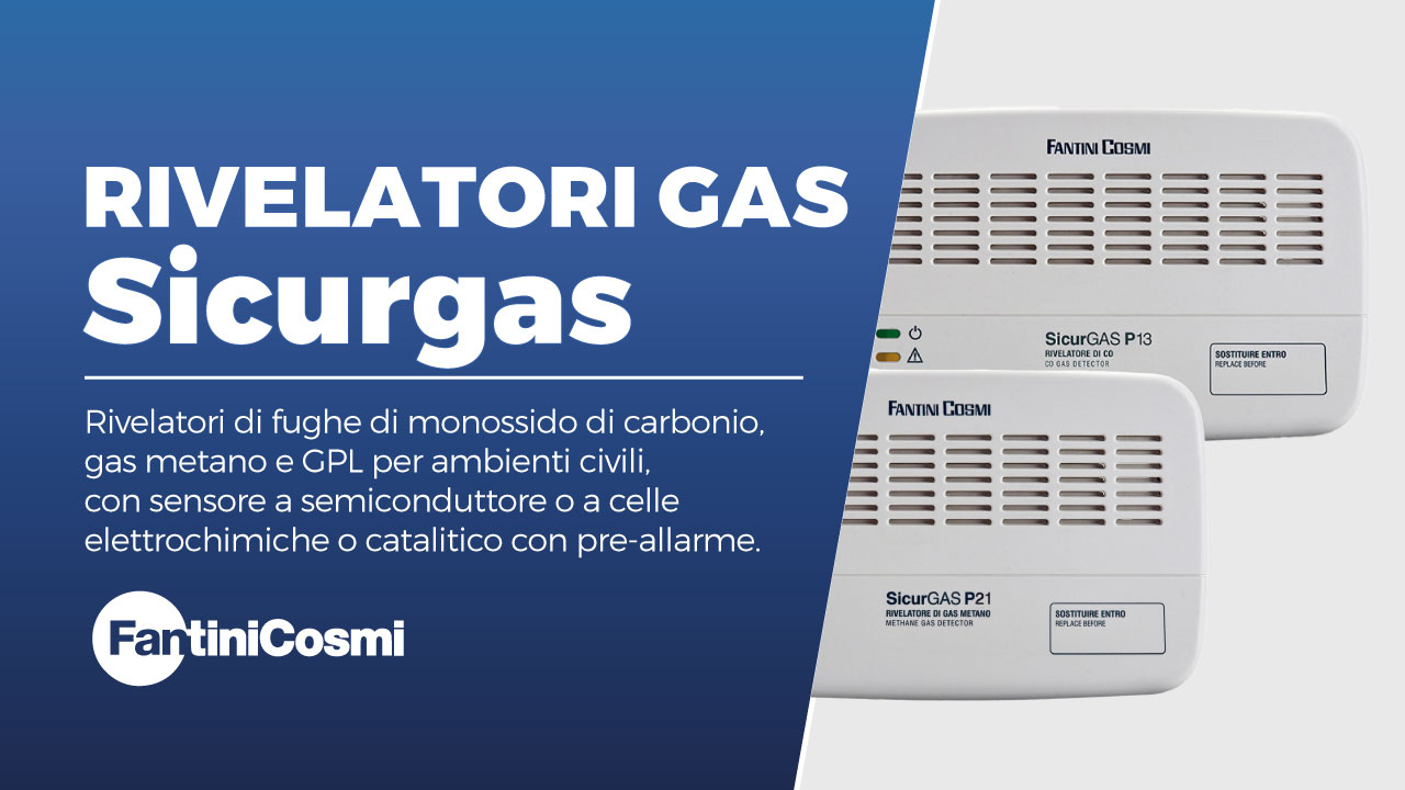 Fantini Cosmi propone una gamma completa di rivelatori gas denominati Sicurgas che mediante una sensibilissima rilevano la presenza di concentrazioni pericolose di metano, monossido di carbonio e GPL, facendo scattare allarmi acustici e luminosi. Sono inoltre in grado di pilotare le valvole a riarmo manuale per interrompere l’erogazione di gas, con l’indiscutibile vantaggio di consentire la tacitazione di falsi allarmi.