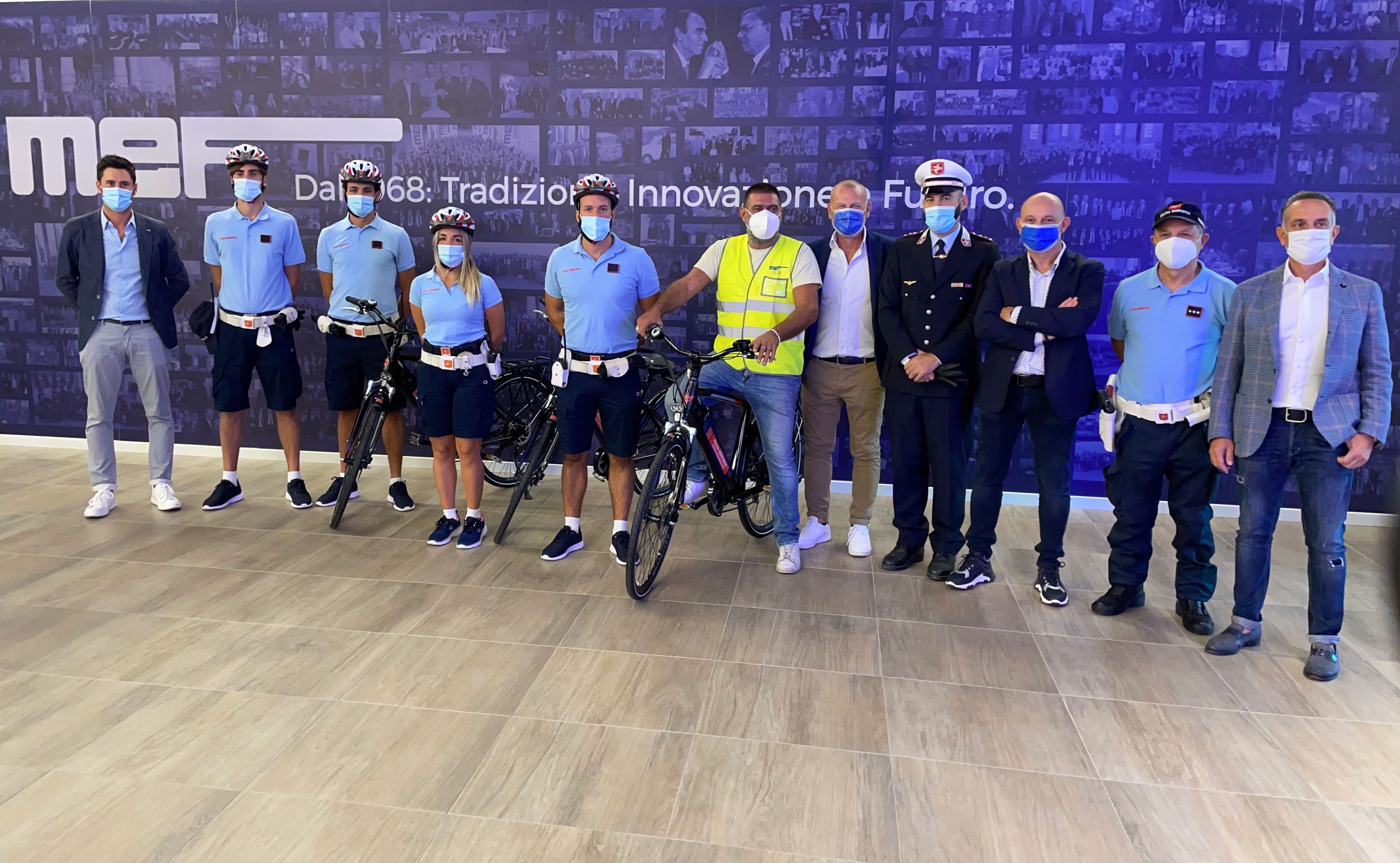 Tre biciclette elettriche alla polizia municipale di Campi Bisenzio per il servizio di polizia di prossimità. La consegna, avvenuta nel Centro Logistico MEF , alla presenza dell’assessore Riccardo Nucciotti, del comandante della municipale Francesco Frutti, del responsabile del centro logistico Dario Bartolini, del responsabile logistica Mef Marco Conti, del presidente Mef Leonardo Giaffreda e dei membri del board di Mef Luca Giaffreda e Simon Sanfilippo.